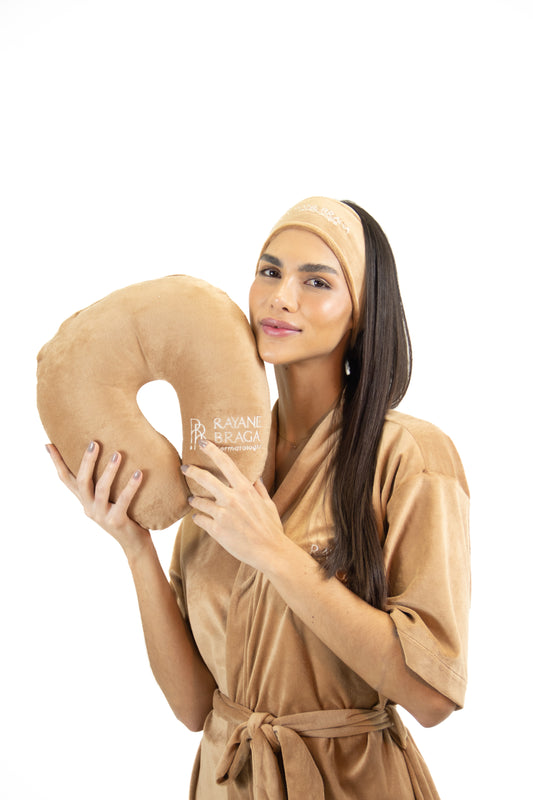 Kit Faixa Pós Transplante Capilar e Travesseiro de Pescoço Personalizado Marrom
